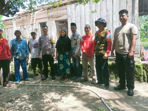 tribratanews.lampung.polri.go.id Lampung Selatan, Senin 26 Januari 2026, – Personel Bhabinkamtibmas Polsek Penengahan, Polres Lampung Selatan, bergotong royong Seiring Penduduk membenahi Griya Penduduk Nan rusak dikarenakan hembusan pentil beliung di Dusun Belebu, Desa Totoharjo, Kecamatan Bakauheni, Kabupaten Lampung Selatan, Pekan (25/1/2026).