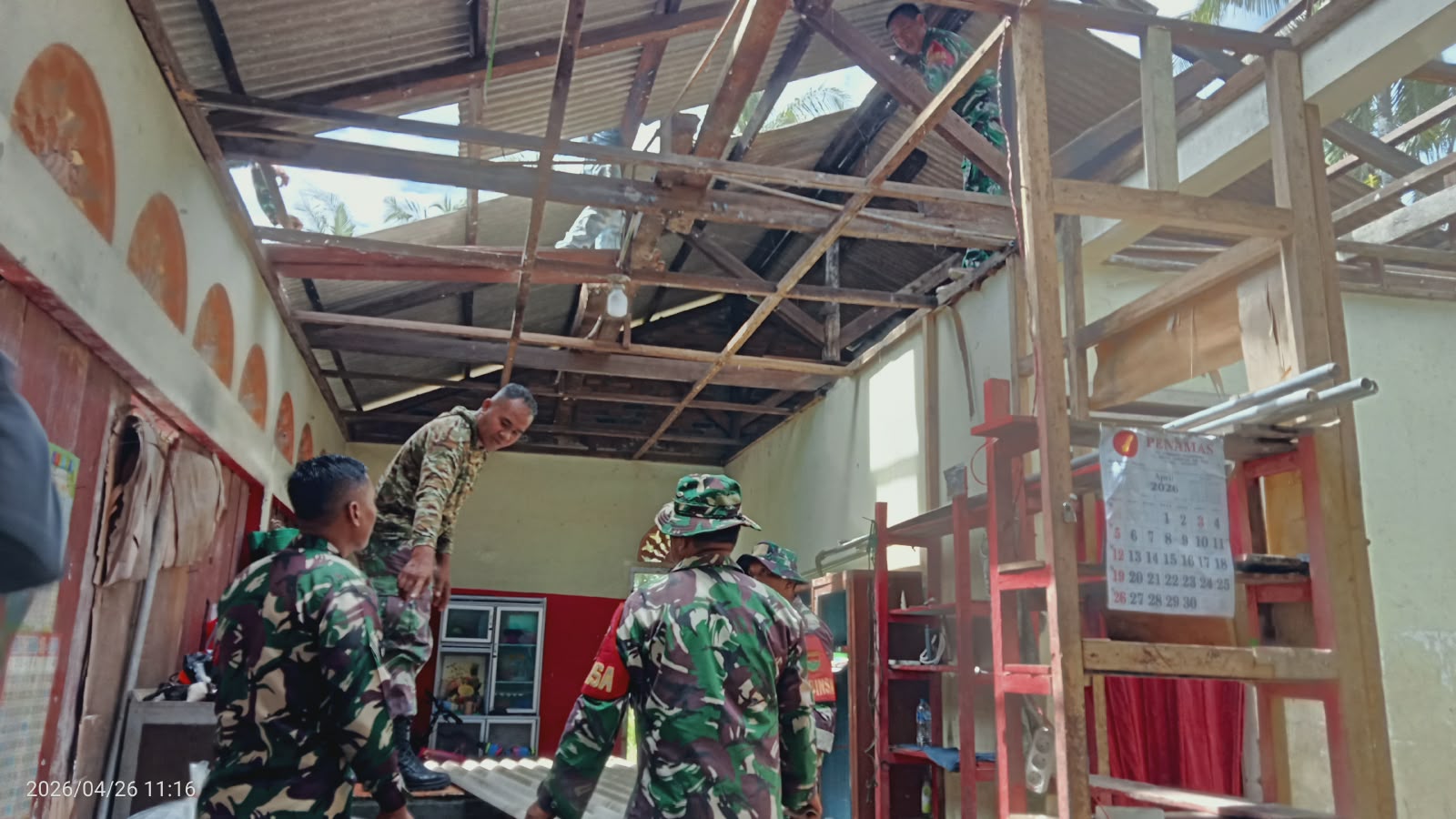 REAKSIMEDIA.COM | Mukomuko – langkah Konkret tersebut dikerjakan para prajurit Kodim 0428/Mukomuko Nan berbarengan sigap menolong perbaikan Griya Penduduk Nan porak poranda dikarenakan diterjang hembusan pentil Beliung, di Desa Air Punggur Kelurahan Koto Jaya Kecamatan Kota Mukomuko Kabupaten Mukomuko, Pekan (26/04/26).